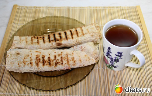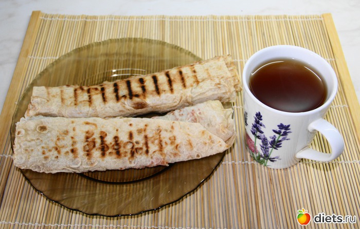 Обед - лепешка с овощами:лепешка, кетчуп, помидоры-черри, листья салата