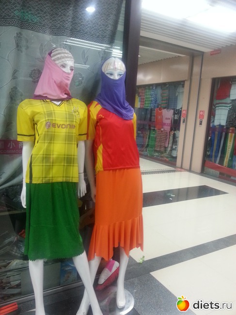 А так по мнению модных китайских дизайнеров выглядят спортивные костюмы для мусульманок