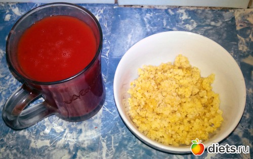 Пшенная каша и томатный сок.