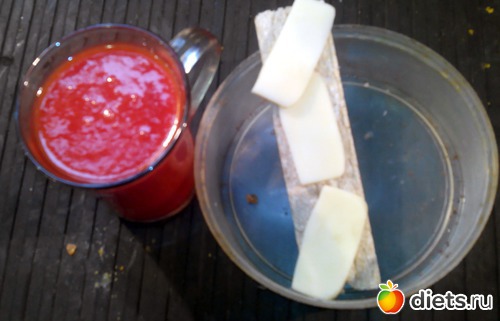 Томатный сок, сулугуни и один хлебец.