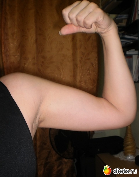 Обхват руки - 27 см (без изменений) - конечно изменения есть, но только визуальные. Ручка округлилась, мышцы больше не висят, стал виднеться бицепс. Вот:
