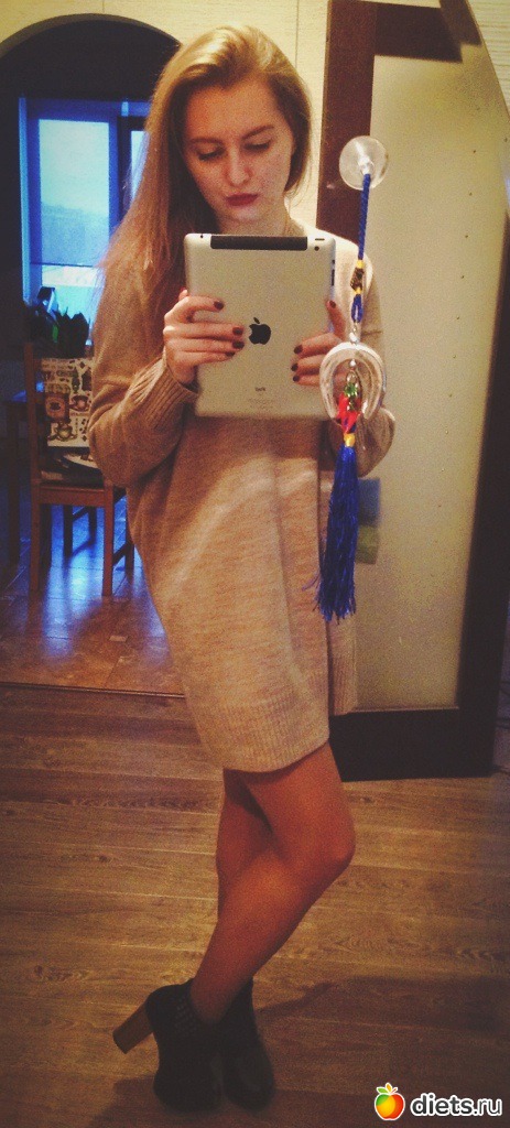 Перед тем, как выходить, пожалела, что еще рано до любимых батильонов, хотя к этой бесформенной кофте-платью они были хорошо подошли