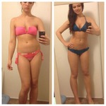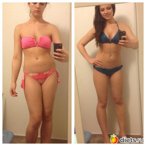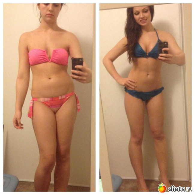 На первой фотке купальник подобран меньшего размера и отвратительного цвета. Более темный и подтягивающий купальник визуально сбрасывает пару килограмм.