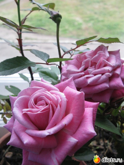 это декоративные( розовые) из магазина, те что в горшках продают, а красные садовые, те что из питомников