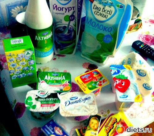 Йогурты, молоко, кефир, творожки, сыр плавленый, семя льна ииииииии шоколадки маленькие взяла