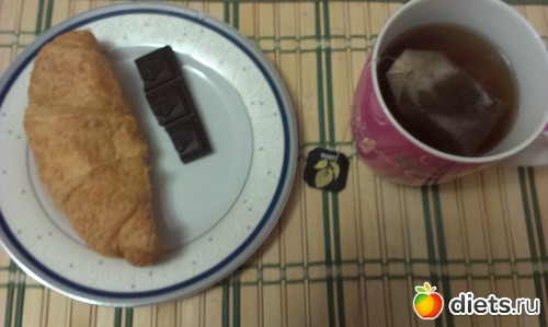 Ужин:полоска горького шоколада..круасанчик и чай...