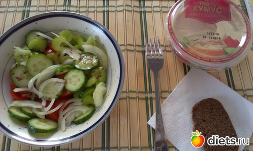 так вот обед...мой любимый салат...хумус с хлебцем и чаёчек...