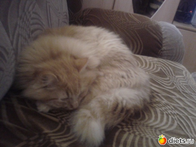 мотя - 3,0... капец, мне ее уже гладить страшно, лопатки торчат и колются... Но сегодня, вроде бы, хотюны (вторые за месяц!!! и надолго ли) закончились - весь день только спит и ест