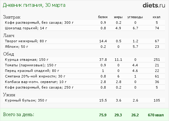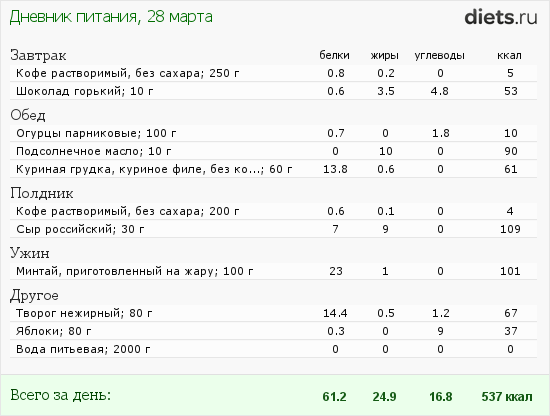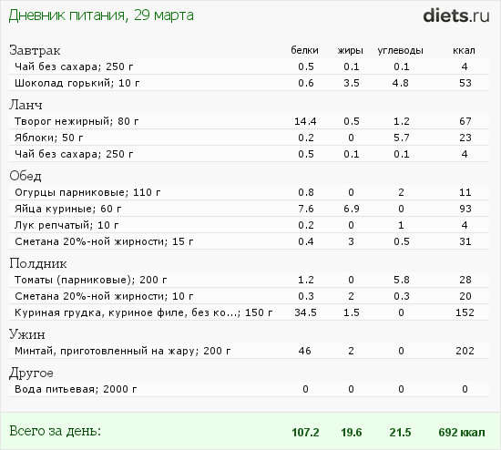 Я уже месяц сижу, вот за пару дней мои дневники питания, может вам сгодится.