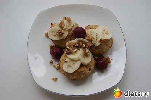 На завтрак испекла от такие вкуснючие диетические кексики с маком и корицей. Т.к. они не сладкие, дополнила их бананом, медом и орехами. Это ооочень вкусно.