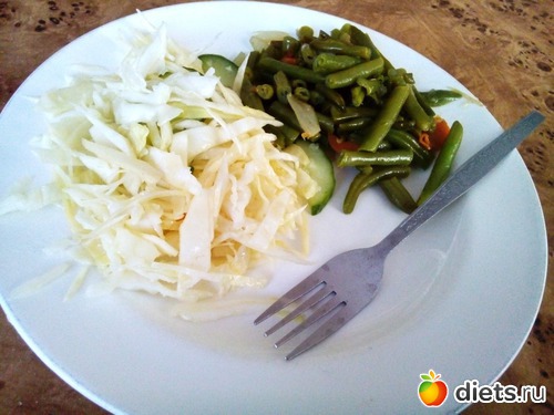 по половинке капустного салата и стручковой фасоли в столовой.