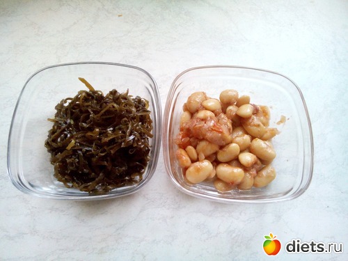 200 граммов фасоли по-корейски и граммов 150 морской капусты, выпила