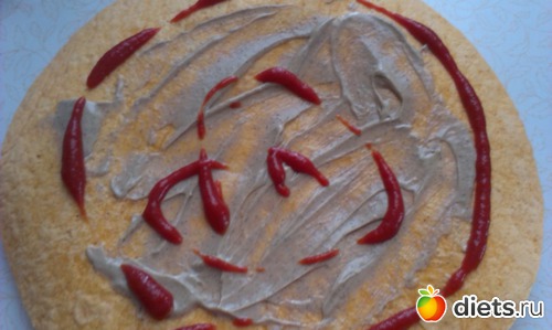 намазала лепёху горчицей и кетчупом...