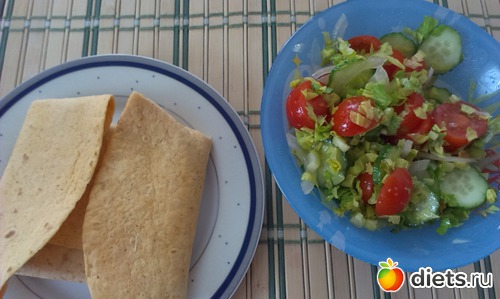 Обед:лепёшка с овощами тушёными...овощной салатик...и чаёчек...