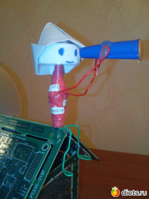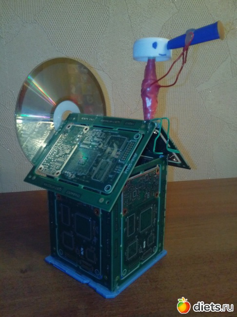 Муж предложил, сделать из плат карандашницу… но тематика космос… я предложила сделать домик и посадить на него человечка с подзорной трубой…