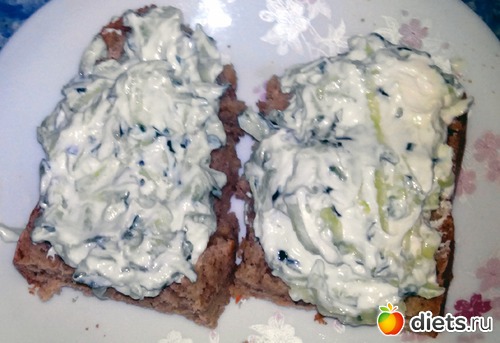 Натер огурец, смешал его с самодельным греческим йогуртом и получившейся пастой намазал хлеб. Получилось весьма вкусно и сытно.