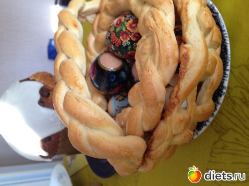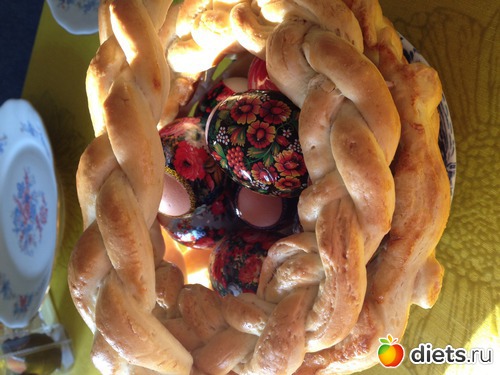 Вид не идеальный, зубочистка видна кое-где, но я была довольна. В этом году исправлю ошибки. Косу буду печь на краю той же формы, что и корзинку пекла.