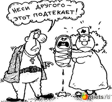 Так проходит еще 10 минут. У мужика сил нет держать младенцев. Думает, зайду, посмотрю в чем дело. Заходит в родильную комнату, видит, вокруг кругами бегает акушерка, а здоровый врач изо всех сил плечом упирается его жене между ног, и кричит: