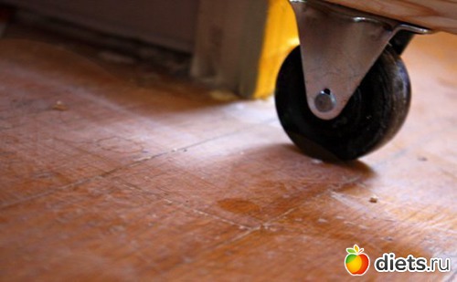 Шаг 2. С помощью шурупов прикручиваем колесики к низу двери в двух местах.