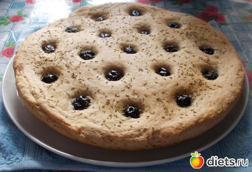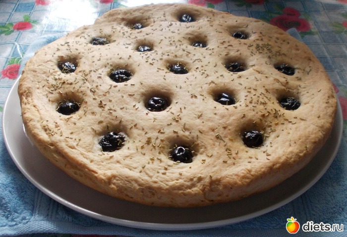 Фокачча с маслинами и розмарином.