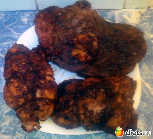 Но, если учесть, что обмазка это совсем тоненький слой, а жира там почти не было, то смотрите раздел "запеченное мясо".