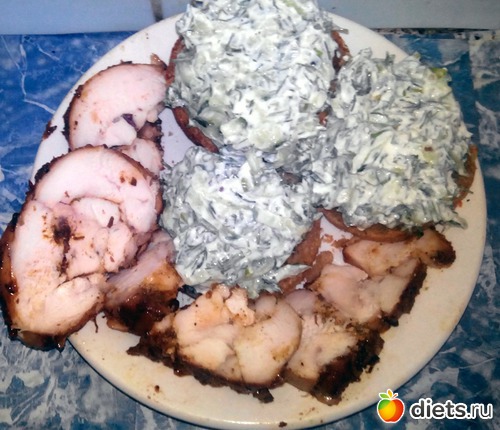 я решил попробовать грудку. Не впечатлило. Ну, и хлеб с огуречно-йогуртовой пастой. Желающие узнать, что это такое - смотрите предыдущие посты.