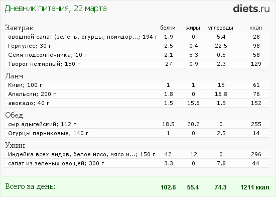 Сегодня получился перебор по жирам. Так что завтра отвеса может не быть. Но тем не менее и питанием, и самочувствием, и вообще системой, которую выбрала, я очень довольна.