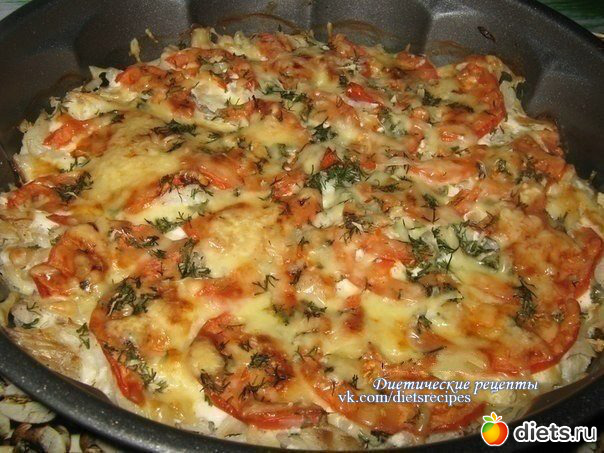 Рыба запечённая с помидорами и сыром.