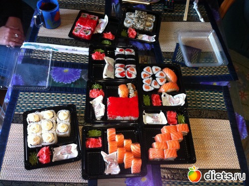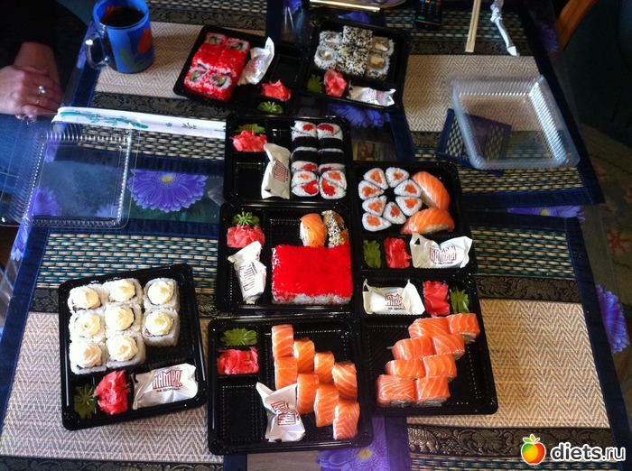 съела 2 порции. Естественно с соевым соусом, поэтому завтра не взвешиваюсь)