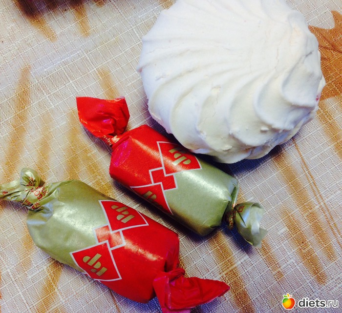 Сладости выглядят устрашающе, но, по сути за день 2 зефирки и 4 конфеты.