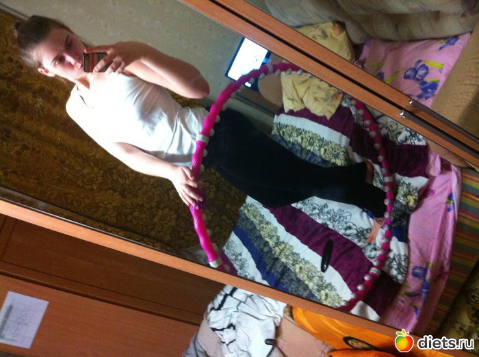 Обруч такой тяжелый я пыталась крутить, привыкала понемногу, только-только привыкла - переехала (обруч был не мой)