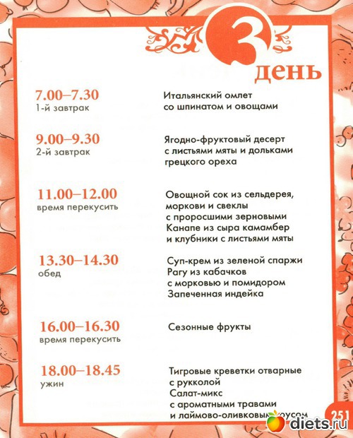 Я пробовала по такому меню кушать. Готовила просто другие похожие блюда. И 1 меню повторяла не 1 день, а 2. Тогда все получается.