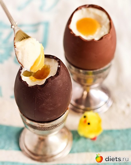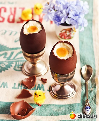 Вынем шоколадные яйца из холодильника за 10 минут до подачи на стол.