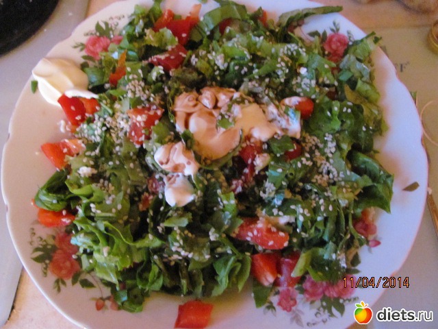 Великолепный салатик. Кунжут обожаю, почти везде его добавляю.. (где надо и не надо )Утащила, буду пробовать обязательно!