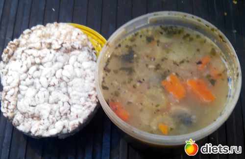Грибной суп. И чечевица. Она там - на дне контейнера. И два слайса.