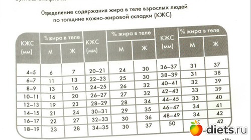 Давайте попробуем определить процентное отношение жировой ткани к общей массе тела.