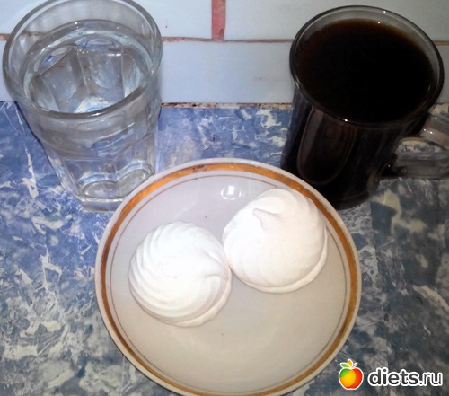 Кофе с перцем, зефир и стакан воды. Было не менее вкусно чем вчера, но такого эффекта как вчера не было.