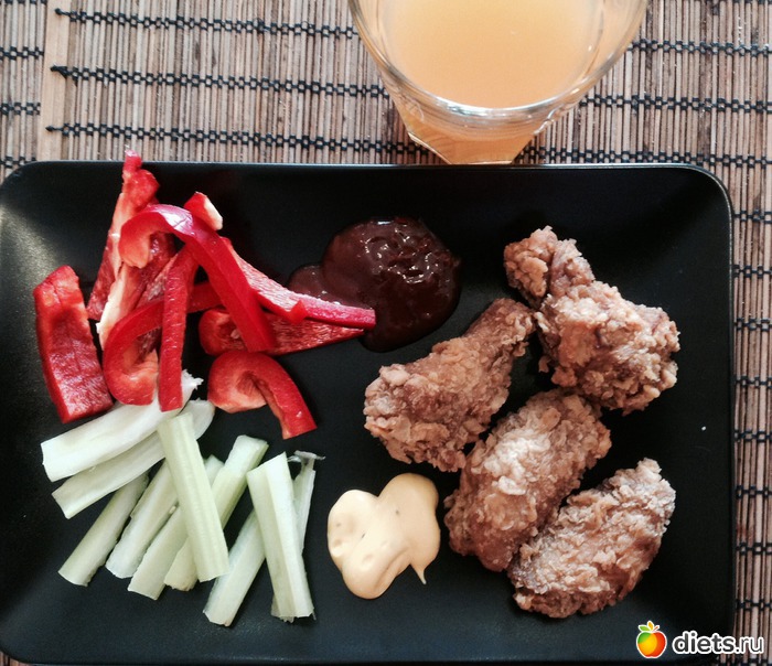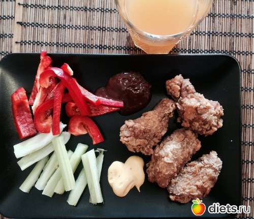 4 кусочка курочки в панировке, сельдерей, перчик, сок
