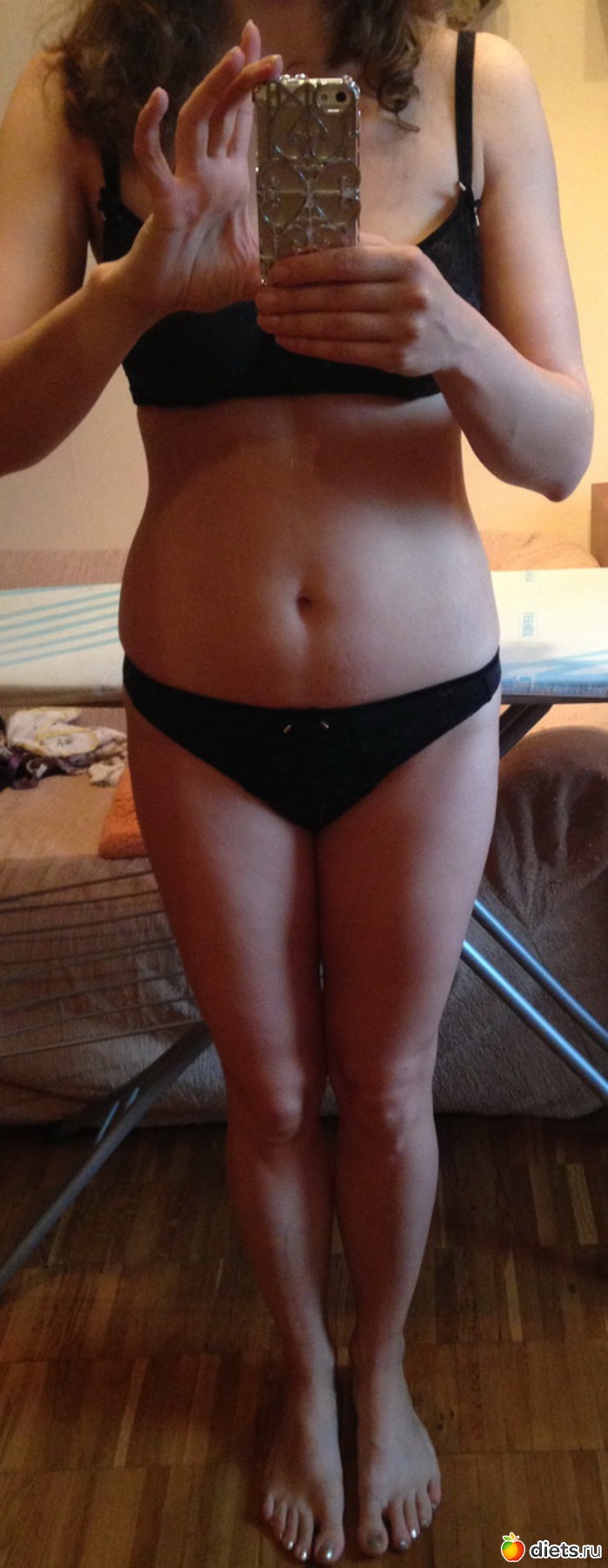 Мне предстоит сбросить еще порядка 6кг до идеального веса 57 кг, который у меня был в 2009 году. С 20 марта этого года я рассталась примерно с 4-4,5 кг с помощью подсчета ккал и фитнеса 2-3 р/нед. Т.о. потеря веса 1 кг в неделю – это то, чего я могу достичь без бадов. Очень интересно проверить насколько этот результат можно улучшить с помощью Элавии. Для чистоты эксперимента привожу свою фотографию на сегодняшний день и параметры. Состав тела: Жир 29% Вода 49,7% Мышцы 42,1 кг Объемы: Талия 76,5 Живот 89 Бедра 94,5 Бедро вверху 59 Вес 62,4 Данные постараюсь обновлять каждый день Из вчерашней лекции Анны Миляевой почерпнула для себя много полезного. Первоочередная задача – постараться сбалансировать дневной рацион по составу, количеству и времени приема. С этим есть некоторые проблемы. Сегодня в дневнике питания вижу опять переизбыток жиров и недостаток белков и углеводов. Завтра планирую придерживаться варианта меню, которое нам предлагала Аня. Пока все, до завтра!