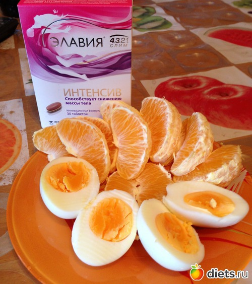 итак по моему сегодняшнему меню) завтрак 2 яйца всмятку, 1 апельсин на обед была вареная курочка с листьями салата и на ужин опять яички с апельсином, только вареные) ну и Элавию запечатлела)) пока меня от них не тошнит - заменять не буду!! а Вы как сегодня питались???