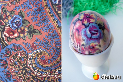 Для покраски яиц шелком конечно можно использовать покупные обрезы, но еще лучше использовать ненужные шелковые галстуки, ведь только у них бывают такие сумасшедшие, винтажные, цветочные, восточные расцветки! Помните, когда дело доходит до галстуков, вам может не нравиться ужасный галстук на вашем мужчине, но вот для покраски пасхальных яиц он подойдет идеально. Старые блузки и кашне тоже могут подойти.