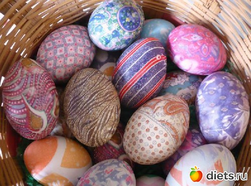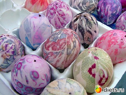 Это один из самых оригинальных и в то же время простых способов покраски яиц на Пасху. При помощи шелковых галстуков.