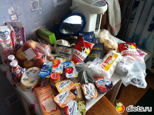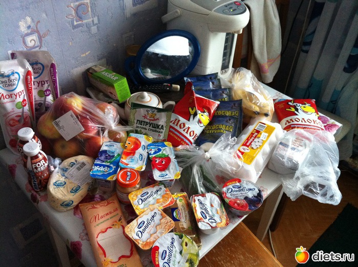 Это просто молочки много))) жить не могу без нее) ну а так фруктики еще) овощей мало всегда беру, не успеваю иногда съедать, пропадают