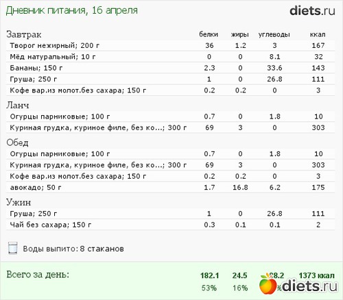 Одумалась я и начала питаться как человек. Чувствую себя прекрасно, дожевываю клетчатку. Вес пока отвратительный - 78,1. Завтра приступлю к выполнению более активных физических действий, так как открытие дачного сезона пока не в полной мере дает нужную нагрузку.