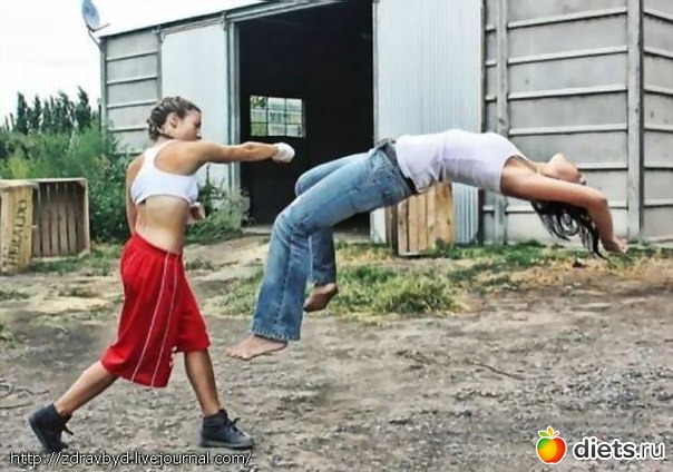 У меня всё как-то по мужицски что ли... Подручными предметами, кулаком, с локтя... Единственное но: я никогда не атаковала первая. Все мои действия-это ответ на посягательства.