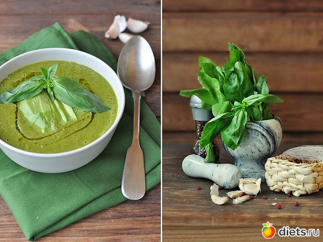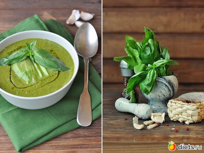 4. Включить блендер и постепенно добавлять овощной бульон, доводя до нужной консистенции. Посолить и поперчить по вкусу. Вторую половину авокадо нарезать и добавить в тарелку с супом.