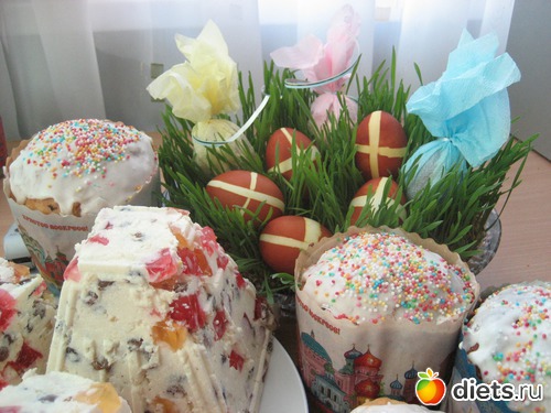 Опять ставим тесто в тёплое место, когда увеличится вдвое - добавляем изюм, промытый, просушеный и припорошенный мукой, можно добавить мелко порезанные цукаты, лимонную или апельсиновую цедру... Тесто перемешиваем, раскладываем в подготовленные формы, ставим, чтобы расстоялись. Хотите воздушные куличи - форму заполняйте на 1/3, более плотные - наполовину. Поднялось тесто - смажьте сверху яйцом и в духовку при 180 град. осторожно, не трясите и не ударяйте, иначе тесто осядет и потом трудно поднять его. Проверяйте готовность зубочисткой или палочками для шашлычков.. Ну и дальше, как обычно - осторожно вытащить из формы, остудить, украсить!!! Удачи!!!