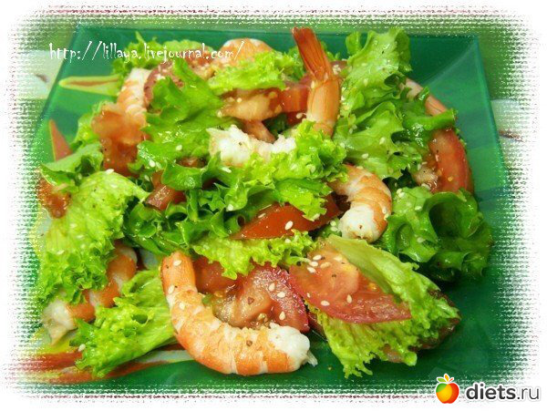Салат с креветками и помидорами