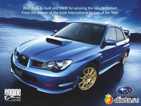 Третий в этой истории оказался не лишним. Subaru заявило, что BMW и Audi — молодцы, выигрывают конкурсы красоты, а вот «Субару», тем временем, стала лучшей в International Engine 2006 (Лучший двигатель).