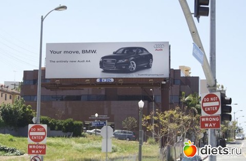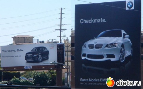 Очередной виток конфронтации ознаменовался в США выпуском рекламного щита Audi с вызывающим слоганом "Твой ход, BMW!":